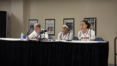 NC State's Tre Holloman, Paul McNeil, Jr., and Quadir Copeland met with the media following the Wolfpack's 88-86 win over South Carolina in the Bad Boy Mowers Series exhibition in Greensboro, N.C.